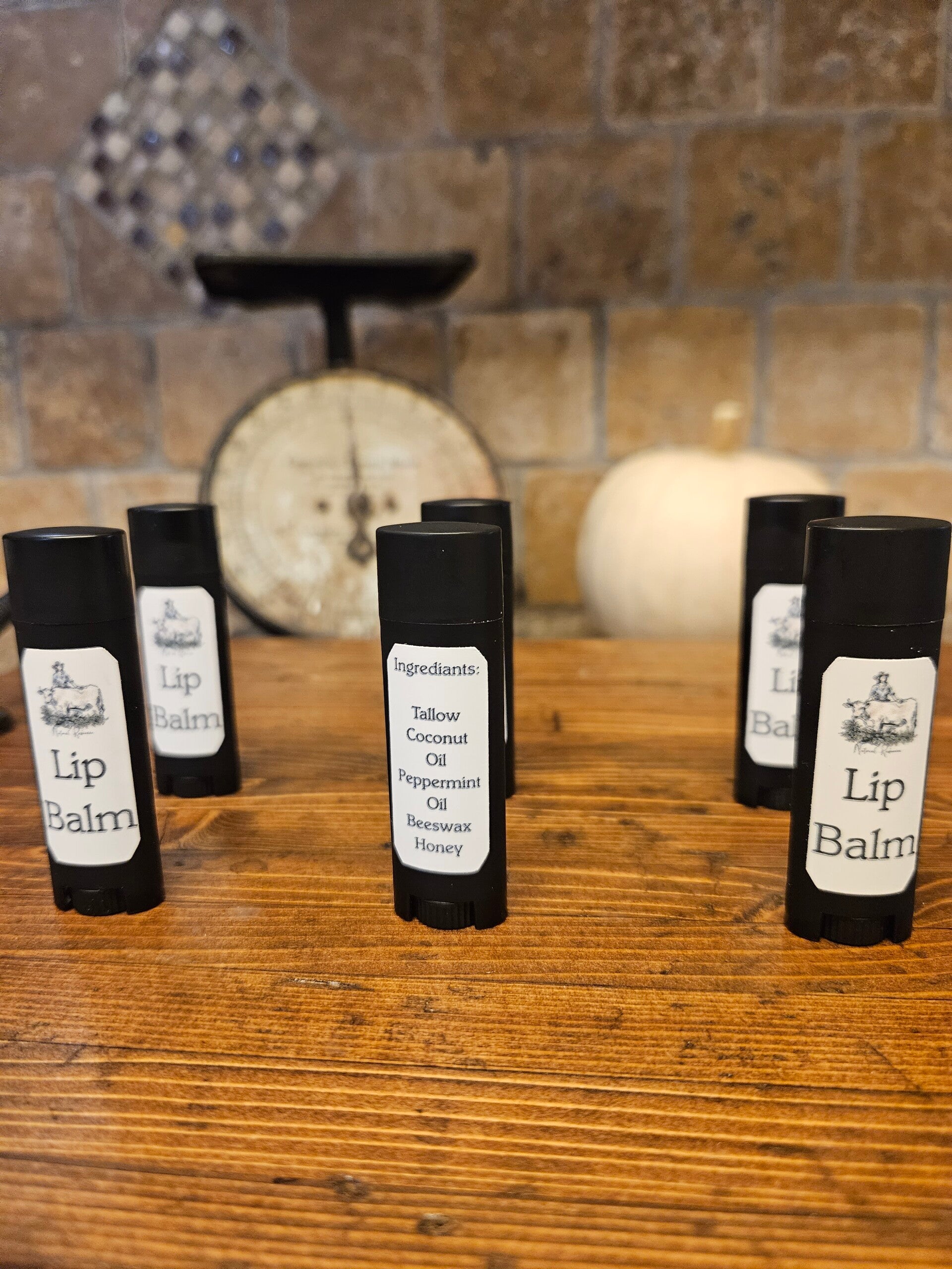Ingredients: Tallow, Beeswax, Raw Honey, Coconut Oil, Vanilla Oleoresin and Peppermint Oil